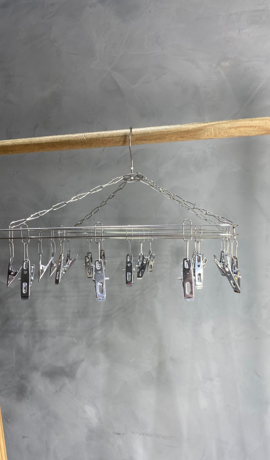 Organize suas roupas íntimas com praticidade e durabilidade! Este varal em aço inox é ideal para pendurar peças delicadas, contando com 20 prendedores firmes que mantêm tudo no lugar.